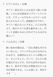 ※週に3回はピーリングを。水のクリームを付けたあと少ししてからお肌をやさしくなでると細かい塊が浮いてきます。これはお肌に溜まった汚れとアカです。出てこない場合はお肌に水分が十分に浸透していない証拠です。このアカが出てきましたらオカが出なくなるまでお肌をやさしくなでてください。(毎日などやりすぎや強くこするとお肌が薄くなりますので週3回~4回が目安です)はじめは灰色のアカが出てきます。これは今まで溜まっていた汚れです。ピーリングをし続けているうちにこのアカが白っぽくなってきます。これはお肌の中の汚れが落ちた証拠です。