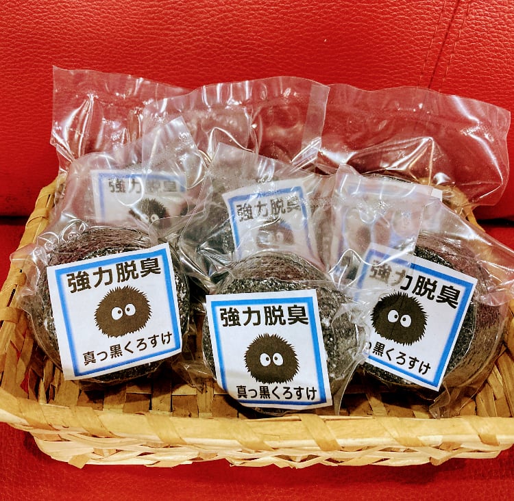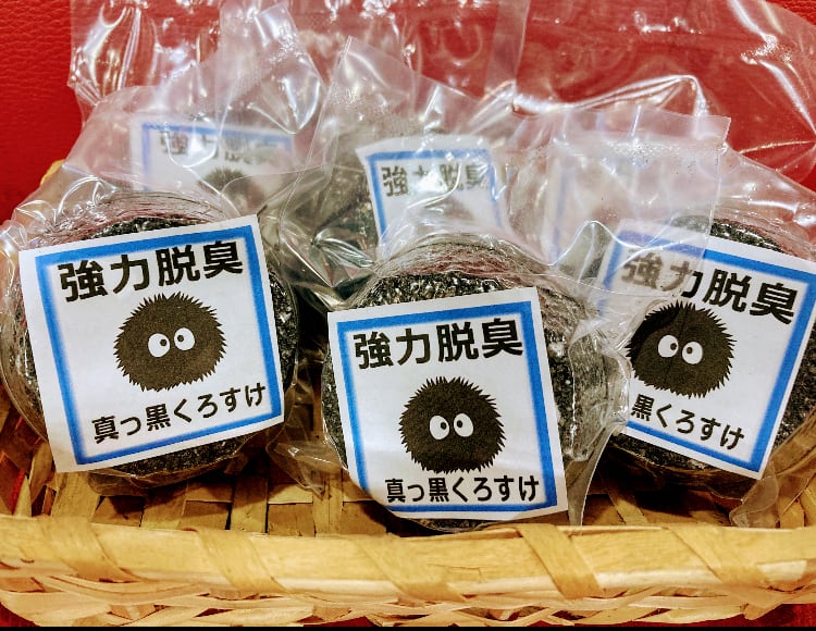 脱臭力の強い重曹に吸着脱臭効果がある超微粒子の竹炭をとミントの結晶を混ぜて固めました。 冷蔵庫、下駄箱、トイレの脱臭などに置いておくとイヤな臭いが取れます。